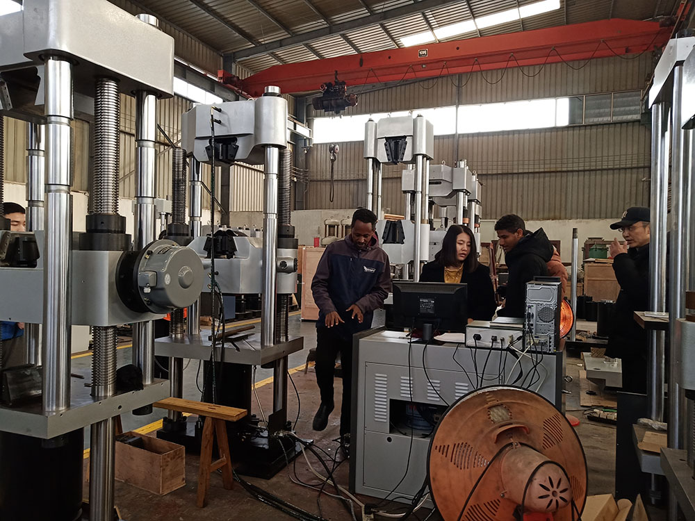 客戶現(xiàn)場學(xué)習(xí)操作液壓萬能試驗機,良好的品質(zhì)和試驗效果,獲得客戶一致好評!